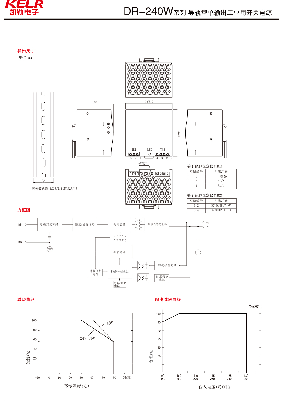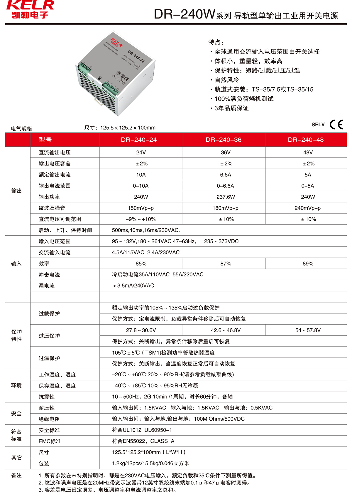 DR-240W 系列 導(dǎo)軌型單輸出工業(yè)用開關(guān)電源