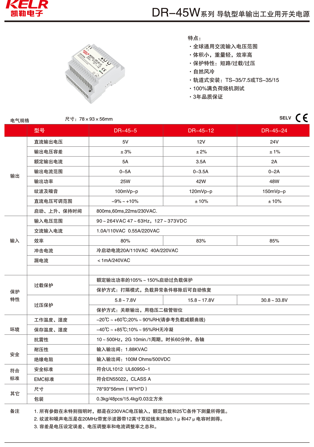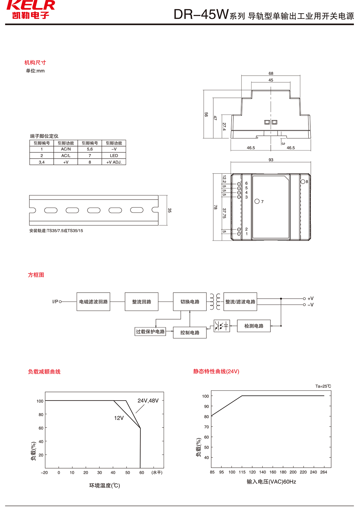 DR-45W 系列 導(dǎo)軌型單輸出工業(yè)用開(kāi)關(guān)電源