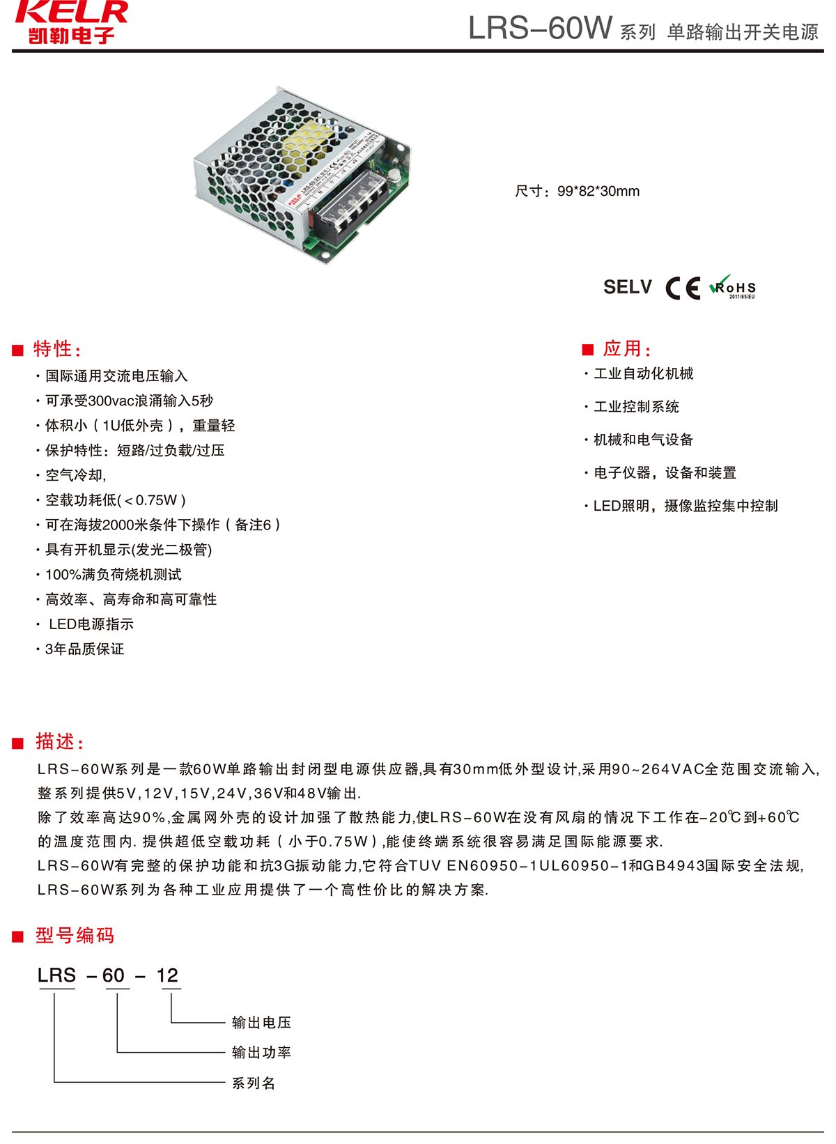 LRS-60-12 系列 單路輸出開(kāi)關(guān)電源