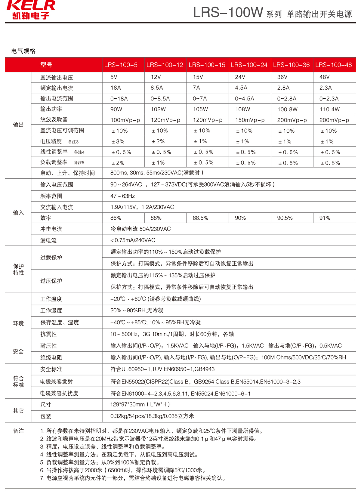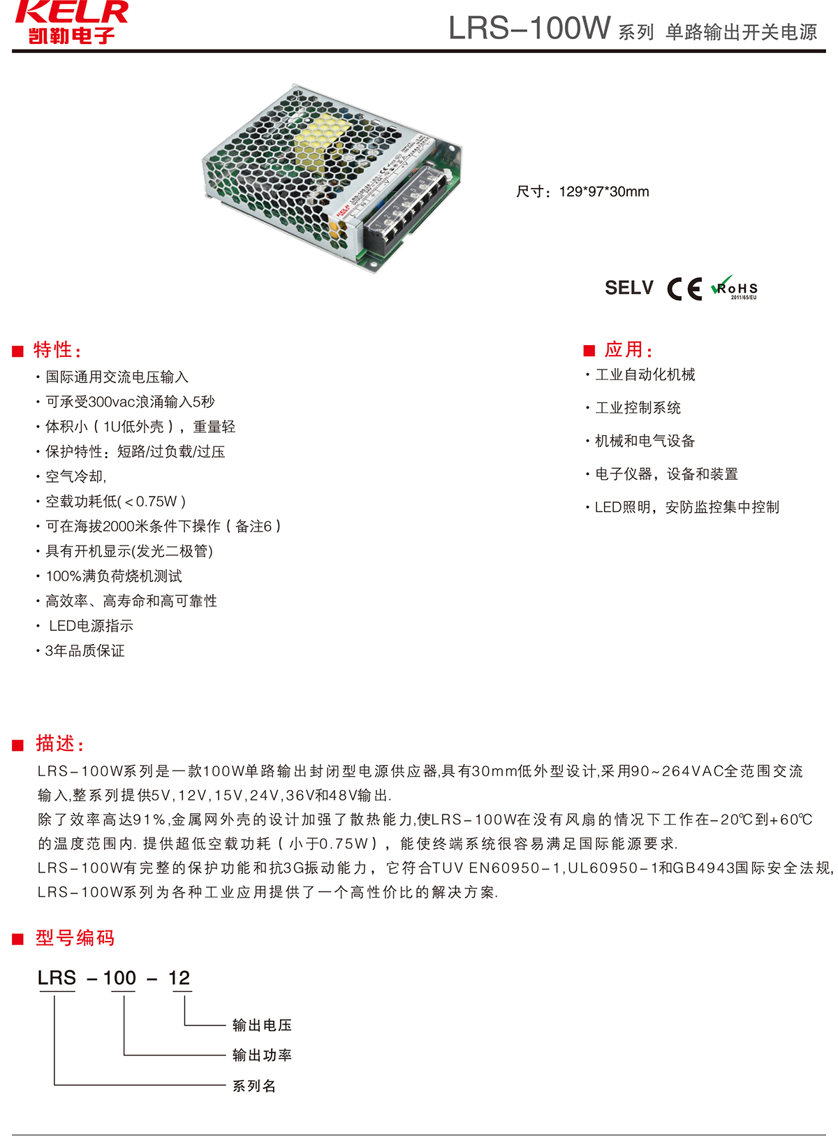 LRS-100-12 系列 單路輸出開關(guān)電源