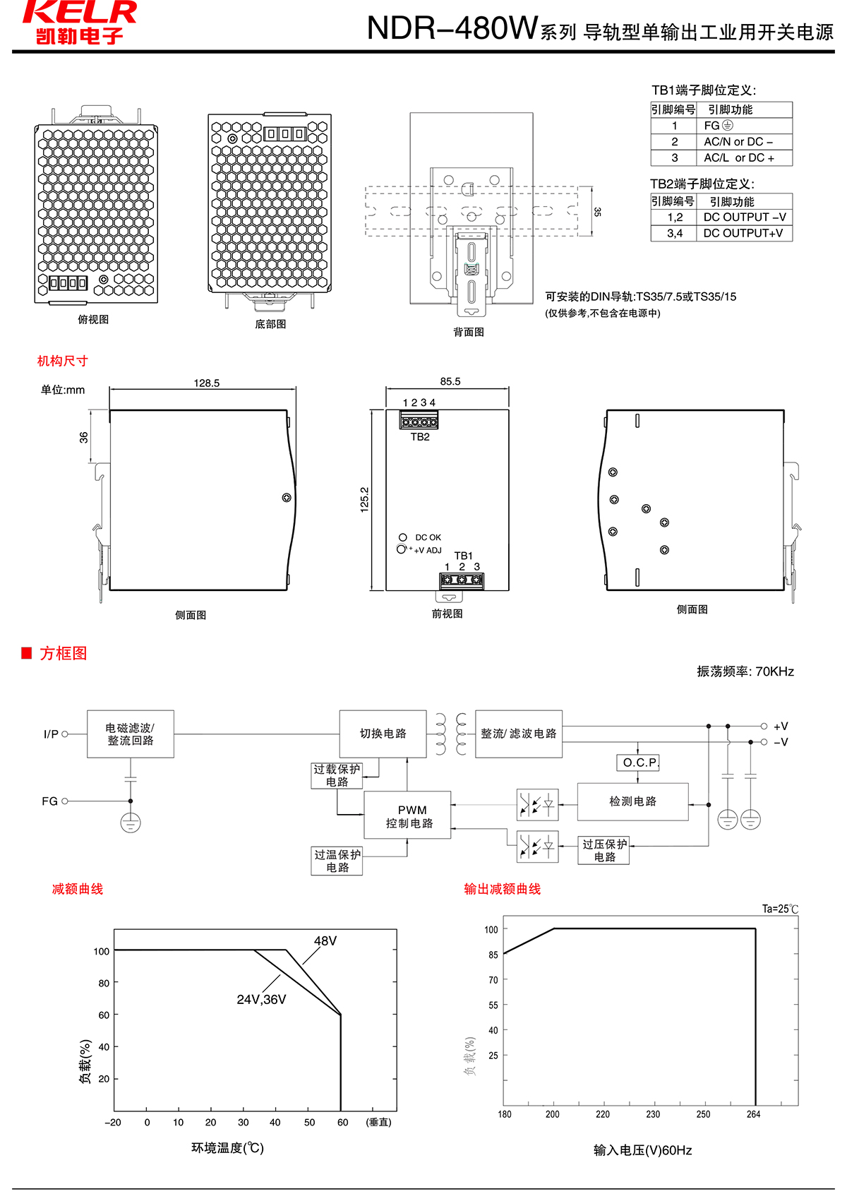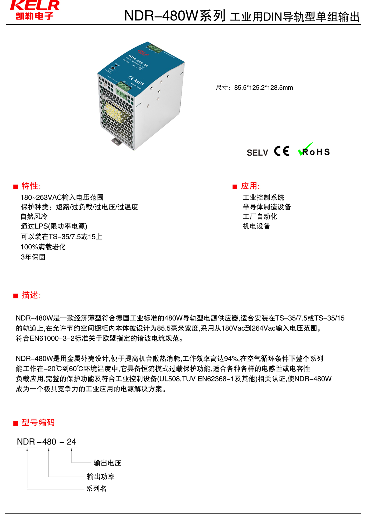 NDR-480W 系列 工業(yè)用DIN導(dǎo)軌型單組輸出