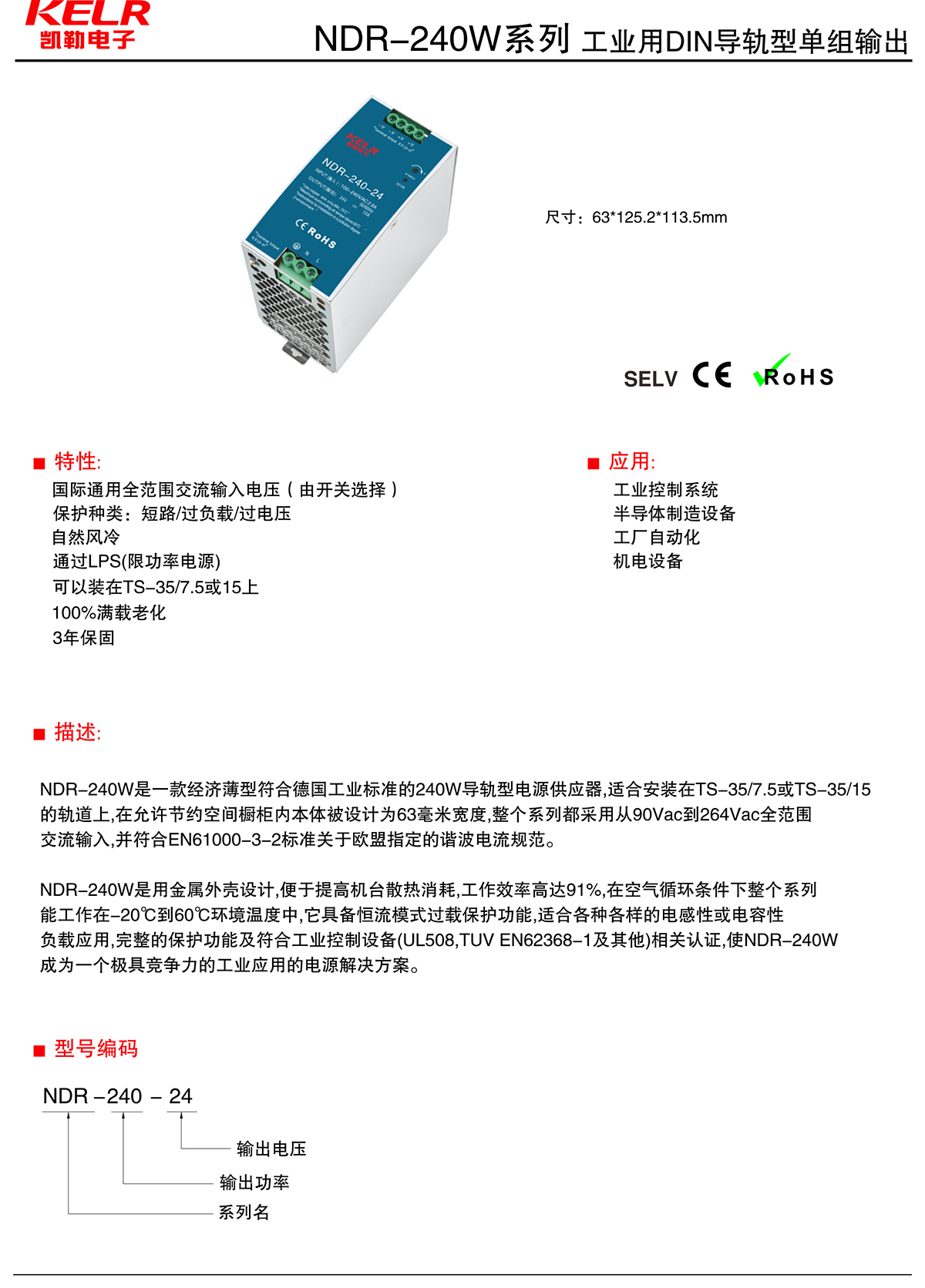 NDR-240W 系列 工業(yè)用DIN導(dǎo)軌型單組輸出