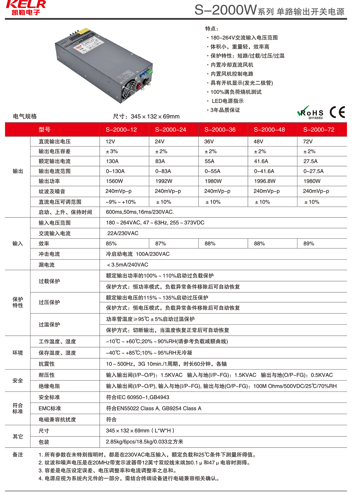 S-2000W 系列 單路輸出開關(guān)電源
