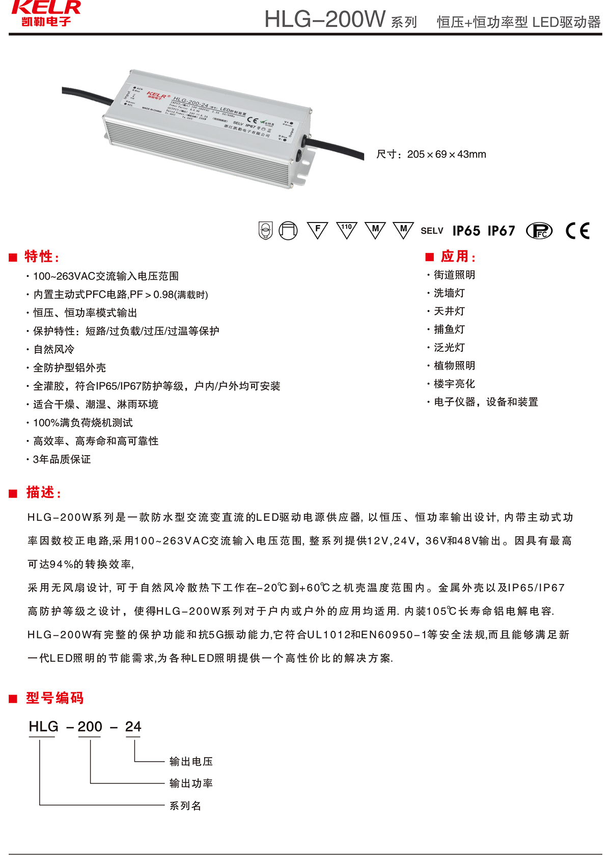 HLG-200-24 系列 恒壓+恒功率型LED驅(qū)動(dòng)器