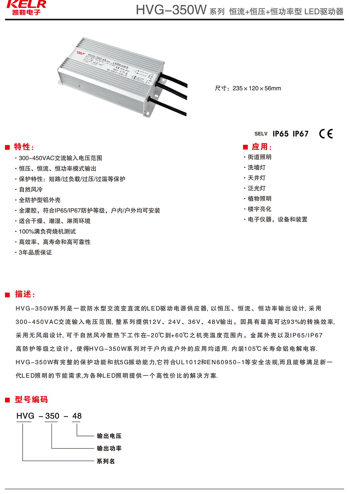 HVG-350-48 系列 恒流+恒壓+恒功率型LED驅(qū)動器