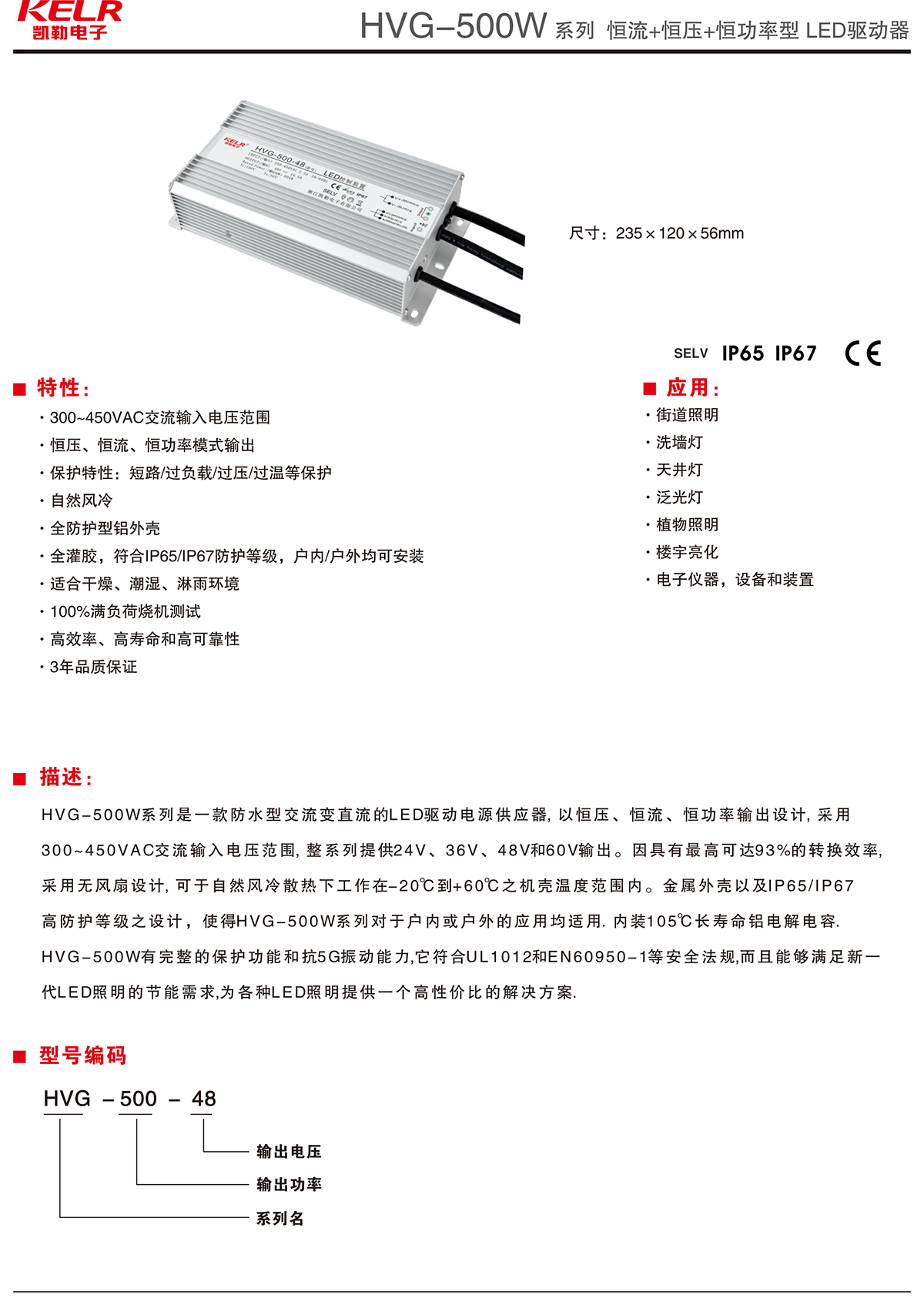 HVG-500-48 系列 恒流+恒壓+恒功率型LED驅(qū)動(dòng)器