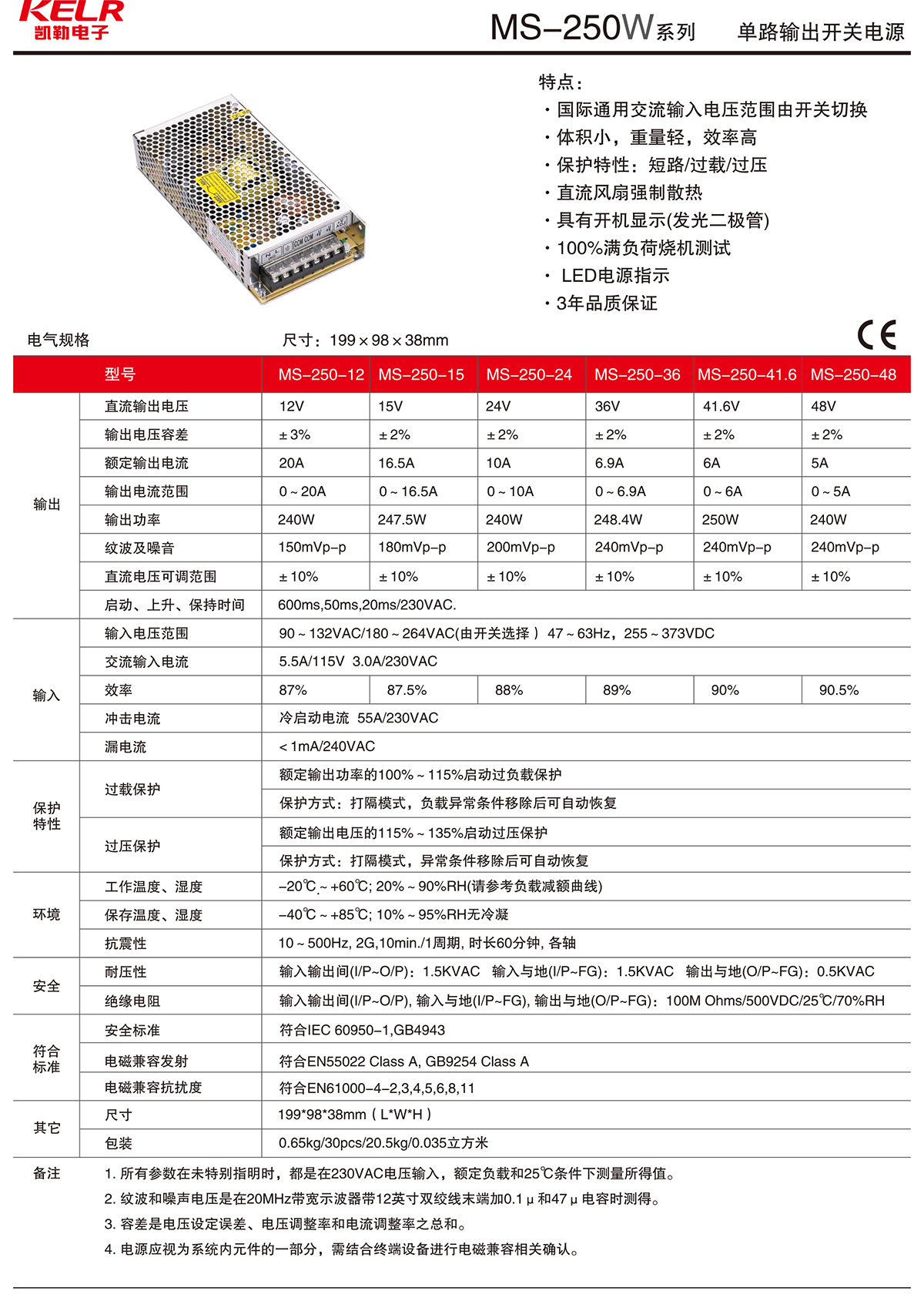 MS-250W 系列 單路輸出開關(guān)電源