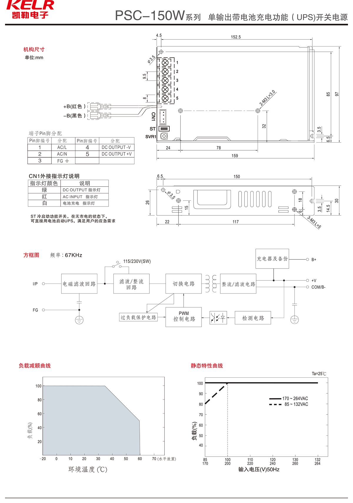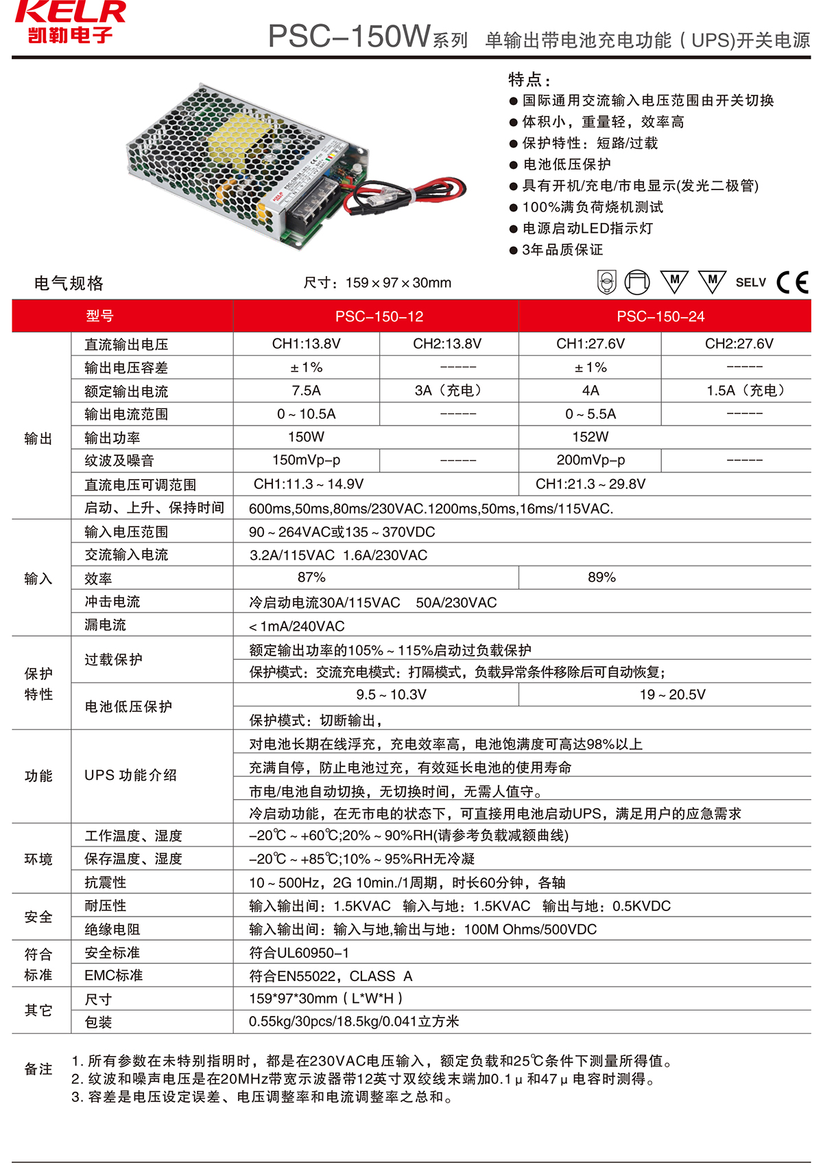 PSC-150W 系列 單輸出帶電池充電功能(UPS)開關(guān)電源